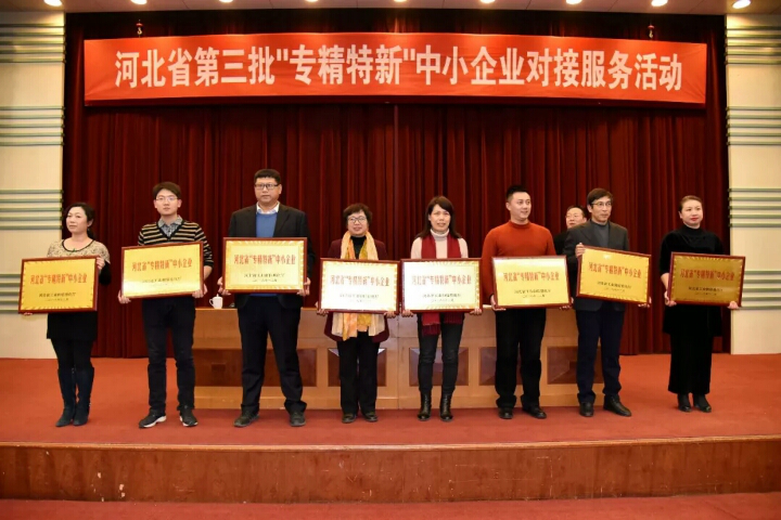 在活動(dòng)現(xiàn)場(chǎng),舉行的第三批“專精特新”中小企業(yè)授牌儀式,河北新大地總經(jīng)理張淑凡作為企業(yè)代表,上臺(tái)接受授牌。