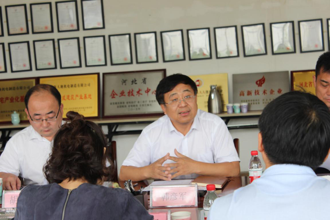 中國國際貿(mào)易促進委員會建筑行業(yè)分會集成建筑委員會、萬華節(jié)能科技集團股份有限公司、北京浩石集成房屋有限公司、恒森建設集團有限公司、揚州泰利特種裝備有限公司、廊坊中建機械有限公司、大禾眾邦(廈門)智能科技股份有限公司、廈門麥思??萍加邢薰?、合肥國瑞集成建筑科技有限公司、安健能節(jié)能科技有限公司等會員代表專程來到河北新大地進行交流溝通。