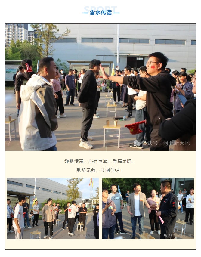 時間:2024-09-30 來源:秋風(fēng)送爽,為熱烈慶祝中華人民共和國成立75周年,豐富職工文化生活,培養(yǎng)職工團(tuán)結(jié)協(xié)作、敢于拼搏的體育精神,河北新大地開展秋季趣味運動會。